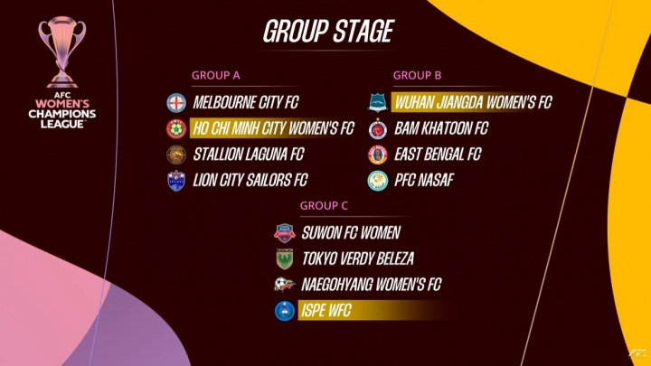 C组:水原FC(韩国)、日视东京绿茵美人(日本)、故乡(朝鲜)、体育与体育教育学院(缅甸)